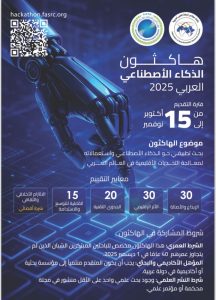 يُعلن اتحاد مجالس البحث العلمي العربية بالتعاون مع المنظمة العربيةلتكنولوجيات الاتصال والمعلومات AICTO)) عن انطلاق هاكثون الذكاءالاصطناعي العربي 2025، الذي يُعد منصة علمية عربية رائدة تهدف إلىتمكين الباحثين الشباب وتشجيعهم على توظيف تقنيات الذكاء الاصطناعي فيمعالجة التحديات الإقليمية التي تواجه العالم العربي.