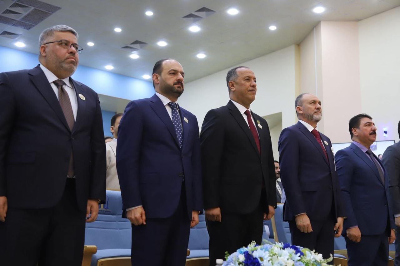كما ألقى السيد رئيس الجامعة كلمة نيابة عن معالي الوزير، شدد فيها على أهمية البحث العلمي في مواجهة التحديات البيئية، ودور الجامعات العراقية في طرح حلول علمية ومبتكرة تخدم مسيرة التنمية المستدامة.