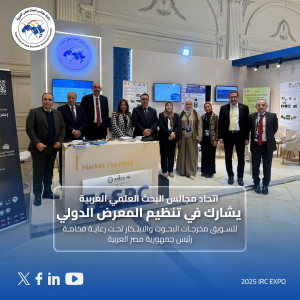 اتحاد مجالس البحث العلمي العربية يشارك في تنظيم المعرض الدولي لتسويق مخرجات البحوث والابتكار تحت رعاية فخامة رئيس جمهورية مصر العربية