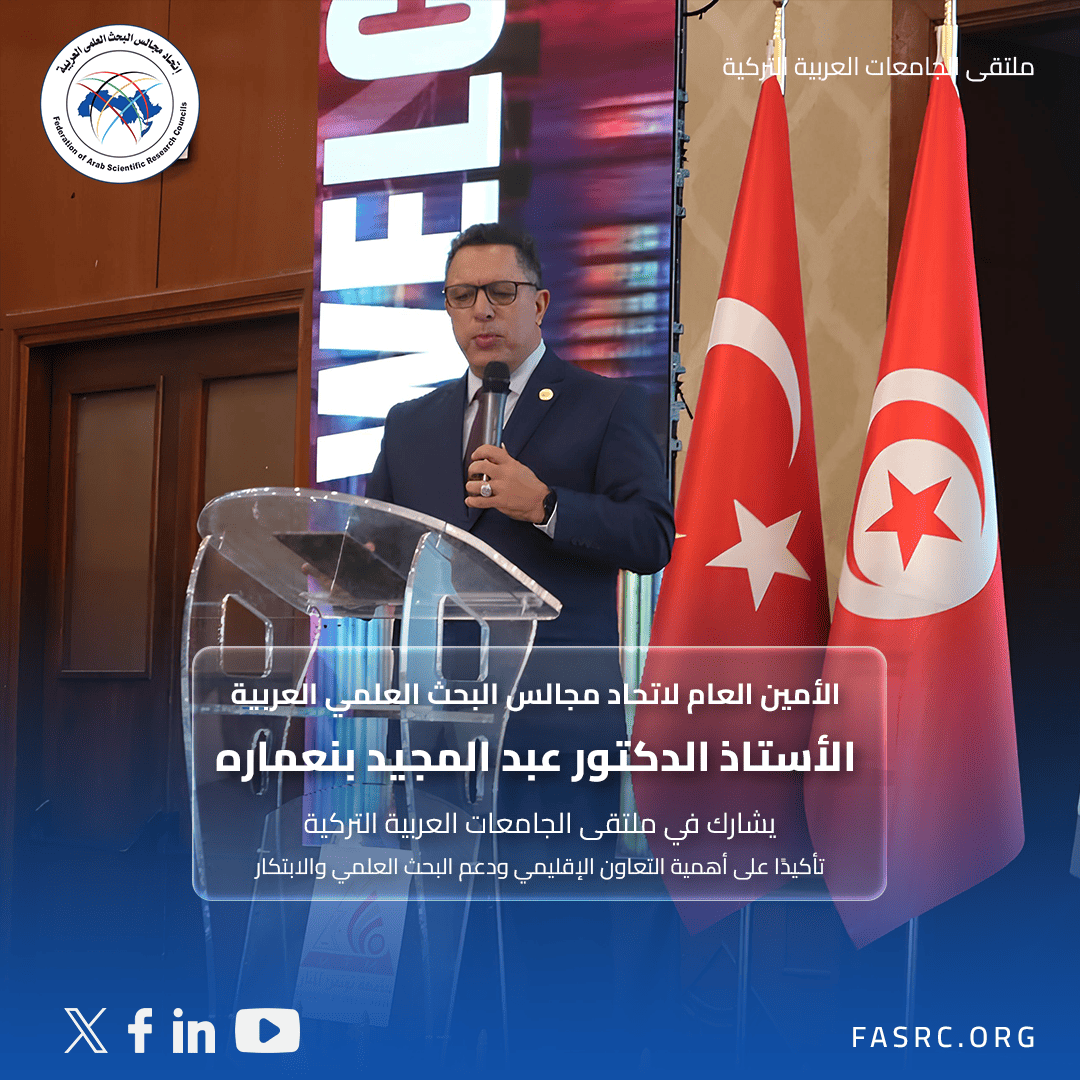واختتم كلمته بالتأكيد على أن تعزيز التعاون العربي–التركي في البحث العلمي يشكل ركيزة أساسية لتحقيق التنمية المستدامة وبناء مستقبل مشترك قائم على المعرفة والابتكار.