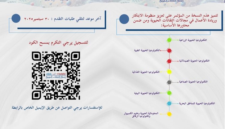 وتشتمل محاور المؤتمر: استعراض مقترحات بحثية مبتكرة من الطلاب والباحثين والشركات الناشئة، وتعزيز التعاون العربي المشترك في مجال التقانات الحيوية، ودعم الابتكار وريادة الأعمال في تطبيقات التقانات الحيوية.